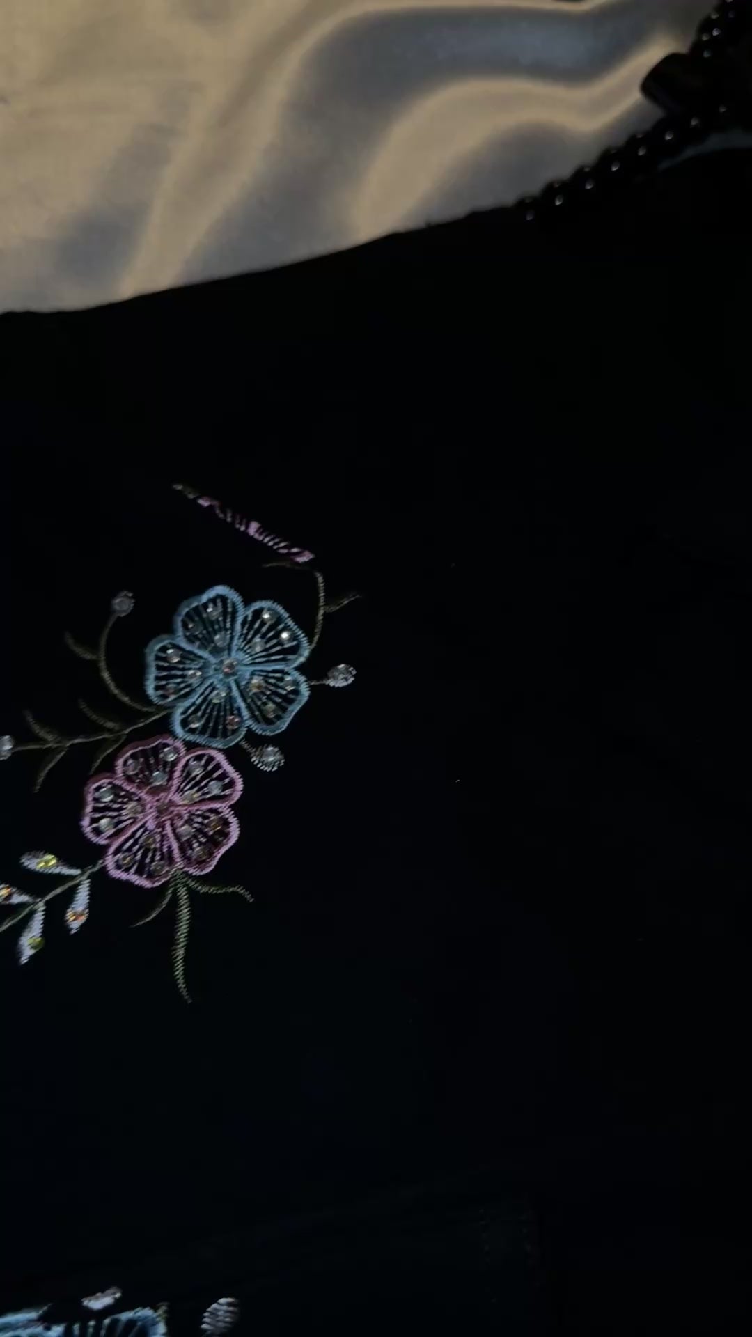 • Black base with intricate embroidery/embellished detailing